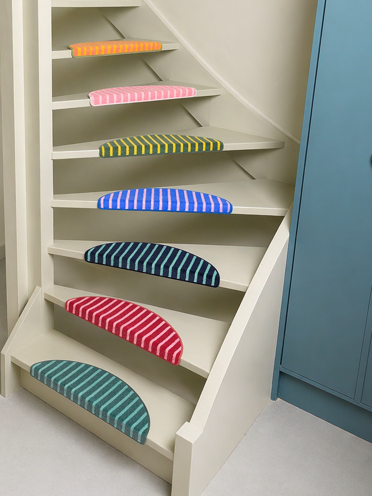 De Retro Rhythm trapmanen brengen beweging, kleur en rust samen in één ontwerp. Zacht aan je voeten, strak afgewerkt en ontworpen om je trap écht onderdeel te maken van je interieur.